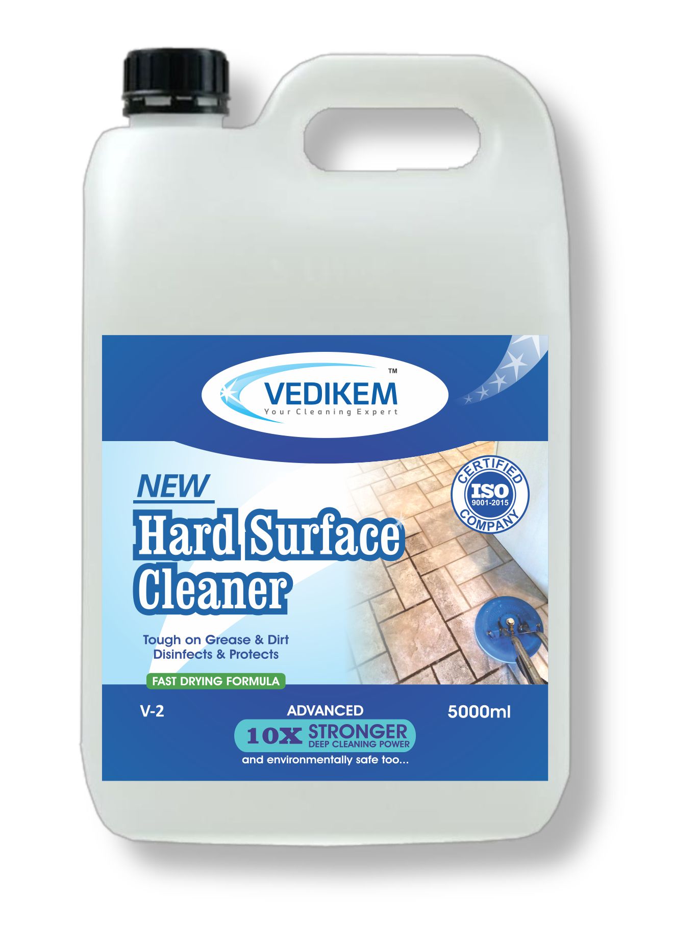 V-2 Hard Surface Cleaner VEDIKEM Hard Surface Cleaner to remove heavy dirts, grease. This hard surface cleaner is an extremely powerful for all general purpose cleaning. It removes stubborn dirts & heavy grease from floor, walls and other hard surfaces.