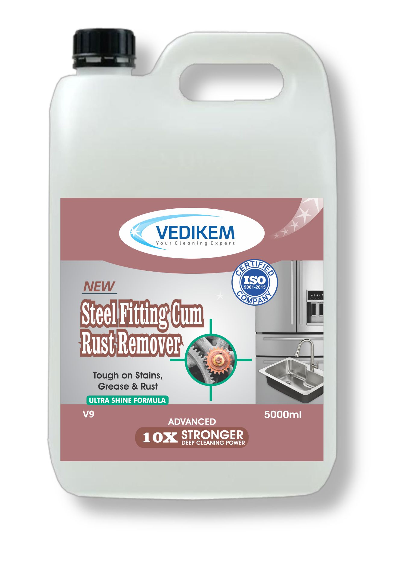 VEDIKEM Steel Fitting Cleaner is an extremely powerful product to removes rust from any steel fitting, surfaces & Tiles. It is useful for maintaining all kind of steel fittings.