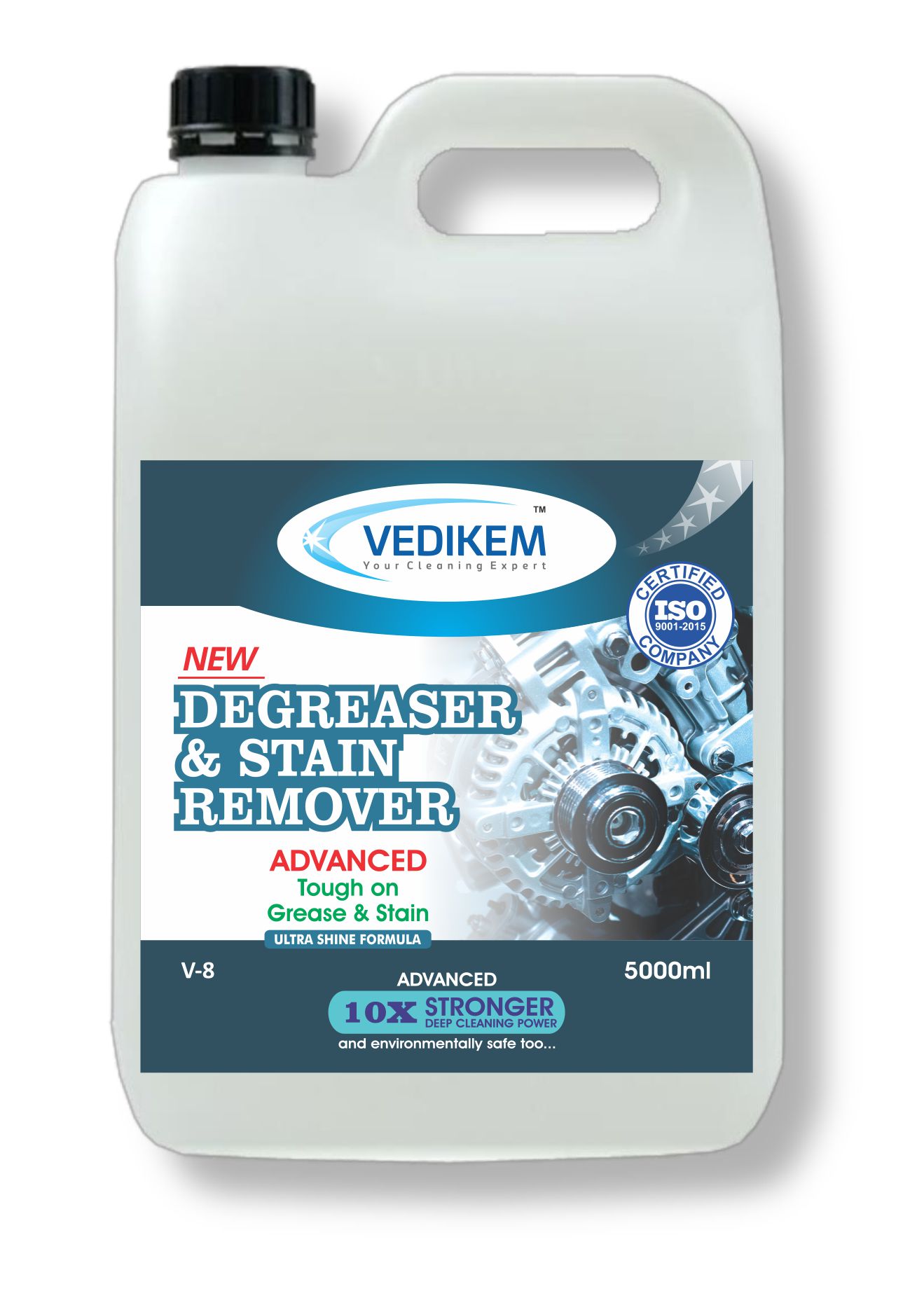 VEDIKEM Degreaser & Stain Remover gels powerful formula removes grease, oil and stain from all type of surface and equipments. With the higher cleaning property it is tough on grease and stains.